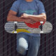 Skateboard Rouge Jaune Soleil Spot Noir Blancs