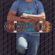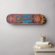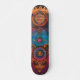 Cette conception de skateboard a une illustration colorée d'une entité mystique et de symboles cosmiques.