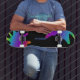 Profitez d'un motif couleur arc-en-ciel qui vous transporte instantanément dans l'époque animée et dynamique des années 80. Le motif est une explosion ludique de teintes vives et audacieuses, rappelant les néons et les vibrations énergétiques caractéristiques du design des années 80. Cette rayonnette est remplie d'un éventail de couleurs attrayantes directement du spectre des néons - roses électriques, bleus vibrants, jaunes vifs, verts néons et oranges audacieuses. Les teintes arc-en-ciel se mélangent et se chevauchent, créant un effet kaléidoscope fascinant qui capture l'esprit des années 80. Le texte est personnalisable pour que vous puissiez personnaliser ce skateboard avec un nom ou un autre texte.