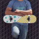 Skateboard Spots et rayures - Turquoise et Jaune