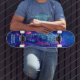 Planche à roulettes bleu Cool de style guépard flamboyant. Personnalisez le pont avec votre propre texte.
