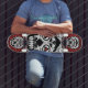 Style crâne de sucre blanc sur motif damassé noir et rouge