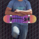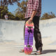Des rayures horizontales aux couleurs tropicales, de jaune chaud au violet, avec la silhouette d'un gracieux palmier, créent un skateboard fabuleux !