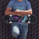 Tabla de skate con un diseño único de lagarto en luces de neón, perfecta para destacar en cada rodada, con colores vibrantes que reflejan un estilo urbano moderno y lleno de actitud; construida con materiales resistentes que garantizan durabilidad y buen control, es ideal para skaters que buscan originalidad y personalidad en su tabla, combinando arte y rendimiento en un solo diseño impactante que hará que cada truco resalte con energía y luz.