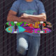 Planche à roulettes, coloré, bleu rouge vert, turquoise, Virginia Vivier, Witches Hammer.