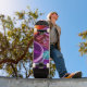 Plaques tournantes au néon sur une planche à roulettes… impressionnante