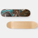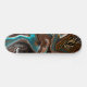 Belle planche à roulettes en marbre motif couleur marron, turquoise et bleu léopard.