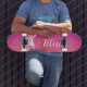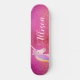 Unicorn rose Parties scintillant or Épercées Skateboard personnalisé CLIQUEZ PERSONNALISER OPTION MODÈLE ET ENTRER NOM Cool skateboard conçu avec rose rose rose faux parties scintillant scintillant pour l'arrière - plan et une jolie face de licorne blanche sur le côté horizontal gauche. Elle a des cheveux arc-en-ciel et des fleurs et personnalisées avec le nom en calligraphie blanche écriture script. Fabrique une idée de cadeau pour un amoureux de licorne.