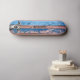 Fresh coastal stripes in blue, teal, and green meet a weathered‑wood texture and a playful dog face. A stylish, summer‑vibe skateboard deck that feels both chic and fun.