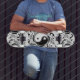 Skateboard Yin & Yang Symbol Black and White Tattoo Style
