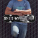 Plateau de skateboard noir et blanc Zombie avec le texte SK8 qui est une abréviation de skate (intelligent hein?) Art de Wayne Tully.
