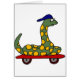 Le serpent vert et jaune hilare de constricteur de boa de bande dessinée utilise une casquette de baseball bleue renversée et monte une planche à roulettes rouge fraîche sur cette conception mignonne et d'amusement de T-shirt. Vous pouvez ajouter le texte fait sur commande en passant commande.