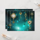 Or, clés antiques avec engrenages et cadrans accrochés sur chaînes dorées sur arrière - plan vert lumineux.