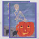 Un tableau amusant d'un penseur squelette, pensant, assis sur un citrouille d'Halloween mignon, est imprimé sur papier plat de 8,5 par 11 pouces. Le citrouille se lève et sa langue sort. Il y a un chat noir debout près du citrouille. Le ciel du soir est dans les tons violet et bleu brumeux. Idéal pour le scrapbooking et d'autres usages arrière - plans. Merci pour faire du shopping à ScrapbookBackgrounds sur Zazzle.