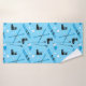 Cool blue towel with a skiing themed pattern of skis, goggles, poles and boots. Awesome gift for skiers and snow sports enthusiasts.