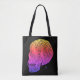 If you are looking for a cool tote bag or some cool skull artwork , this abstract skull print reusable bag the best of both worlds. This skull print blue black tote bag features an abstract line art style skull in pretty sunset shades of purple , pink, orange , red, and yellow . Original ink and pencil artwork by The Gifted Grackle.