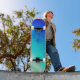 Ce tablier de skateboard a une finition supérieure en bois naturel, tandis que le dessous a une photo du ciel et des nuages (pris au-dessus des nuages), rendus dans des teintes de verts et de bleus lumineux. Cet article est le tablier seulement et doit être adapté à vos roues et matériel, ou ils peuvent être commandés au moment de l'achat.