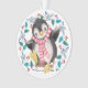 Sur ce ornement, un joyeux petit manchot porte un foulard rayé rose et blanc et s'assoit sur un traîneau. Le pingouin est entouré d'une feuille bleue et d'une couronne de baies rouges. Le dos de l'ornement tient votre texte personnalisé dans cinq champs faciles à modifier. Mignonne pour tout enfant.