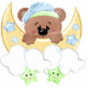 Petit ours bébé mignon avec des étoiles et une lune parfaite pour la pépinière des bébés.