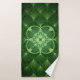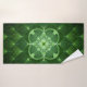 SlipperyJoe's Saint Patrick's Day glowing four leaf clover shape luminous almost kaleidoscopic appearance Irish LGBTQIA gifts symmetrical mandala like shamrock pattern deep emerald forest lime tones geometric grid interlocking circles diamonds rich vibrant green abstract design artistic layered translucent petals center radiates outward intricate fractals gradients fine linework add texture modern ornate depth dimension festive elegant visually hypnotic