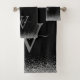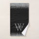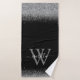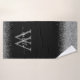 Serviette de bain moderne en parties scintillant noire et mince, élégamment ornée de votre monogramme script, prénom et initiale.