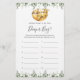 Baby shower à thème Sloth devinez ce qui est dans la carte de jeu sac de couches comprend une illustration de paresse aquarelle et aquarelle de la garland eucalyptus et élégante police de style manuscrit.