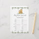 La carte de jeu à thème baby shower avec mot "scramble" présente une illustration de paresse aquarelle et de l'aquarelle verte eucalyptus garland et élégante police manuscrite.