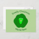 Cette carte postale présente un joli dessin animé d'une moules verte avec de grands yeux et un sourire. Il présente des feuilles vert foncé à l'extérieur et un vert pâle à l'intérieur.