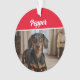 Christmas isn't complete without an ornament on the tree for the family dog! Add their photo and name to this cute smooth-coat Dachshund dog breed specific themed two-sided ornament.