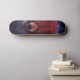 Unleash the wild on the streets with this captivating skateboard deck design featuring a ferocious, snarling wolf head. Rendered in a stunning dark fantasy illustration style, every detail of its textured fur is brought to life, culminating in piercing, electric blue glowing eyes that command attention. Set against a mystical backdrop of a cosmic nebula swirling with deep purples and blues, this design evokes raw power and otherworldly energy. Perfect for riders who embrace their inner beast and want a board that truly stands out from the pack. Ride with the spirit of the wolf.