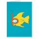 Ce dessin animé d'un poisson jaune aux couleurs vives avec masque tuba est drôle et parfait pour l'été ! Une illustration colorée qui est attrayante et appropriée pour les enfants et les adultes. Que vous ayez besoin d'un logo pour votre équipe de natation, que vous souhaitiez une chemise pour les vacances d'été ou que vous appréciez simplement ce design amusant, vous pouvez faire de ces produits votre propre en customisant la couleur arrière - plan ou même en ajoutant du texte tel qu'un nom, un nom d'équipe de natation ou d'autres détails.