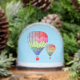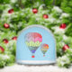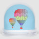 Two hot air balloons. Rainbow chevrons for red, orange, yellow, green, and blue. Blue background for sky.