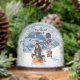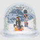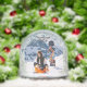 Boule de neige en plastique avec deux photos à l'arrière. Design arrière - plan de neige avec modèles photo de coup de pinceau. Les photos auront des bords déchiquetés. Pour centrer davantage une photo, utilisez l'outil de conception et double-cliquez sur votre photo pour la déplacer. Ajoutez également du texte sur un côté au-dessus de la photo. Le libellé de l'exemple est le lieu et la date de l'année. L'écriture est noire avec de l'ombre blanche. Parfait pour capturer un voyage amusant sur les pistes.