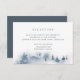 Conçue pour coordonner avec notre collection de mariage Snowbound, cette élégante carte d'encart de réception hivernale présente une scène de forêt enneigée avec des arbres à feuilles persistantes peints à l'aquarelle en bleu et gris. Personnalisez avec les détails de votre réception de mariage, y compris l'heure, le lieu et l'adresse, en lettrage gris-bleu classique fumé.
