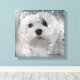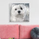 Ce mignon imprimé en toile présente Snowdrop, un doux petit chien maltais. Elle est assise et regarde par la fenêtre la pluie.
