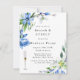 Le design présente une impression couleur avec élément floral dans les tons bleu et blanc sur le feuillage feuille des branches et des gouttes de neige et Scilla sur un arrière - plan bleu clair aquarelle. Idéal pour vos célébrations mariages !