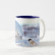 À l'intérieur d'un globe de neige se trouve un paysage hivernal avec un chalet surplombé d'érables nus et de cerisiers. Des parties scintillant de neige sur la pelouse, des buissons saints recouverts de baies rouges vifs flanquent la porte, et des flocons de neige tombent à travers l'air gelé. A côté du globe, une petite poule regarde curieusement la scène miniature.