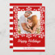 Envoyez à votre famille et à vos amis une carte de voeux rouge moderne Snowflake Happy Holidays. Customisez avec votre photo pour une touche personnalisée.