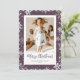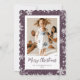 Jolie photo violet Carte de Noël Joyeuse avec flocons de neige, étoiles et neige tombante. Personnalisez facilement cette carte de vacances violette avec votre photo et votre texte.