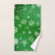 Des flocons de neige blancs et de la neige sur fond de vert émeraude.
