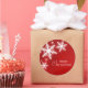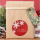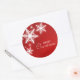 Autocollants de Noël personnalisables avec illustration de flocons blancs sur arrière - plan rouge et Bonnes Fêtes. Vous pouvez le personnaliser avec votre propre texte personnalisé. Produits en papier, timbres et cadeaux de Noël assortis disponibles.