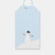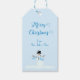 Balises cadeaux de Noël bleu clair avec design d'artisanat de bonhomme de neige. Customisez le salut, ou utilisez l'échantillon, "Joyeux Noël", et ajoutez une signature en bleu. Tout libellé est facile à modifier ou à supprimer. Un petit bonhomme de neige (mon propre design graphique) décore le fond des étiquettes bleu pâle. Une autre image de bonhomme de neige est à l'arrière. Choisissez une couleur de fil.