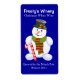 De mignons étiquettes de vin de Noël prêts à vous personnaliser pour lire ce que vous voulez. Les dessins d'un bonhomme de neige décorent le milieu du étiquette bleu. Texte blanc : Frosty's Winery, Christmas White Wine. Avec plus de texte blanc, en bas de la page, Brasé dans le pôle Nord, hiver 2013. Idéal pour vos vins de vacances faits maison.