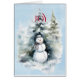 Une belle image d'un bonhomme de neige dans la forêt avec une JOIE rouge vif qui vous tend la main. Le tout sur un arrière - plan d'aquarelle bleu. A l'intérieur, HAPPY HOLIDAYS en rouge et Best Wives pour le Nouvel An en noir