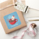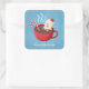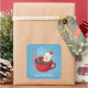 Décorez vos cadeaux de Noël avec un autocollant décoratif de voeux de Noël mignon et humoristique. Il est accompagné d'un mignon bonhomme de neige qui se baigne dans une tasse de chocolat au cacao chaud avec un sucre de canne. Mais il fond. Envoyez des voeux chaleureux et un sourire au destinataire.