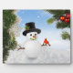 Cette plaque de vacances d'hiver présente une scène de neige avec un bonhomme de neige, des branches d'arbres de Noël et un oiseau cardinal. Une plaque comme celle-ci serait un cadeau judicieux pour quiconque aime la saison d'hiver et les bonhommes de neige.