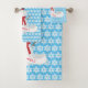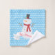 Ce somptueux ensemble de serviettes de bain dispose d'un bonhomme de neige, avec un chapeau haut contre un arrière - plan de flocon de neige. Vous pouvez personnaliser le texte dans la bannière blanche et l'arrière - plan bleu peut également être modifié.