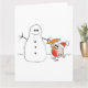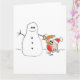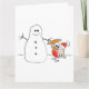 Le mignon robin donne à un bonhomme de neige le meilleur cadeau de Noël, une carotte pour son nez !