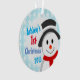 Joyeux bonhomme de neige et motif de flocon de neige sur le bleu. Premier ornement de Noël pour bébé garçon ou fille. Customisez avec votre propre texte.