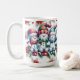 This delightful holiday mug features a charming snowman family dressed in cozy scarves and hats, surrounded by festive red flowers and evergreen branches. Perfect for warming up with a hot drink, it makes a heartwarming gift that brings holiday cheer to every sip. A wonderful addition to your seasonal celebrations, this mug is sure to spread smiles all winter long.
